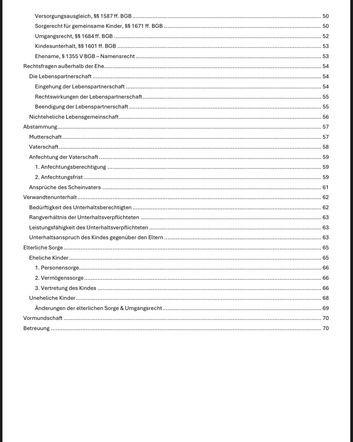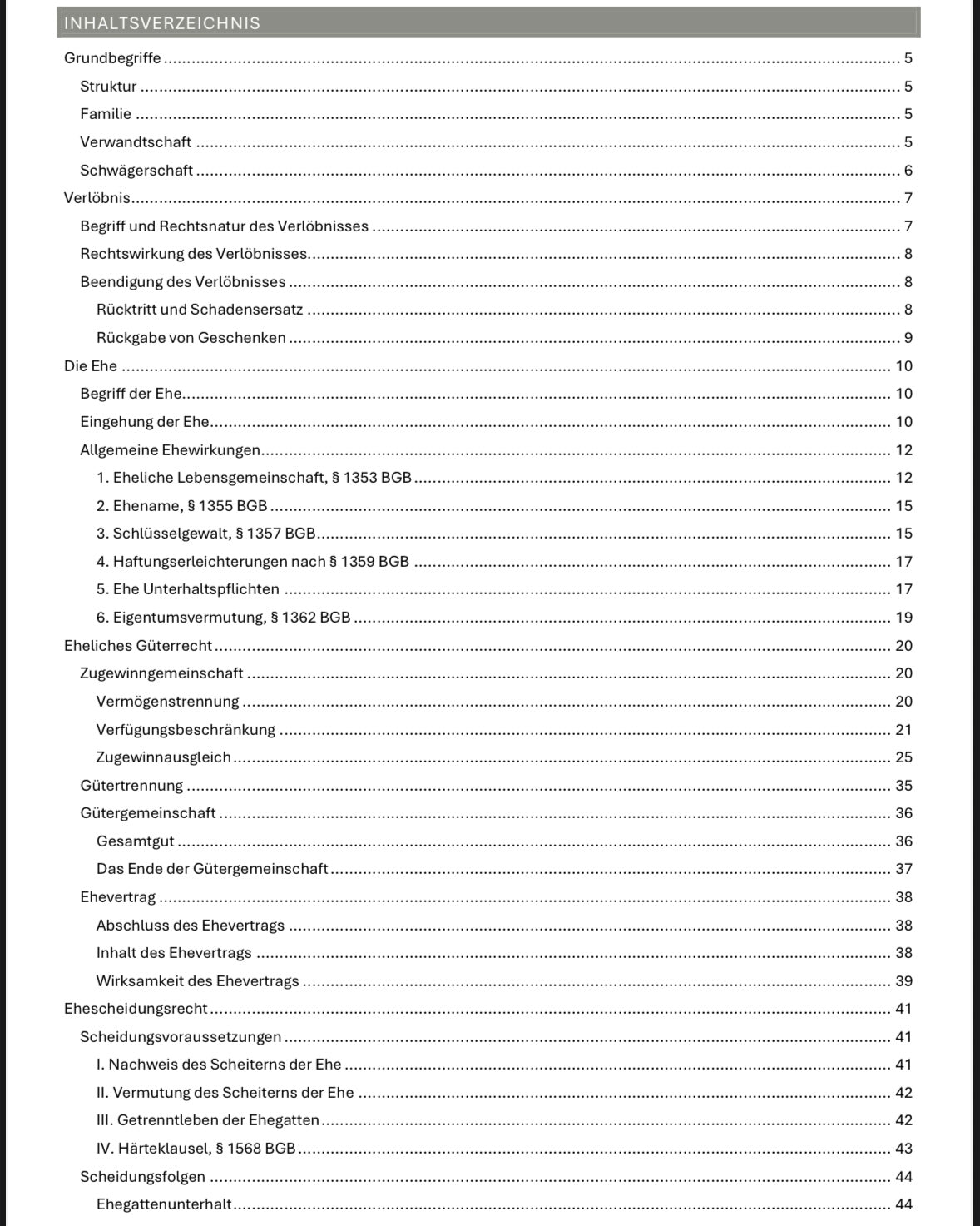Das Familienrecht Skript bietet eine systematische und übersichtliche Zusammenfassung der zentralen Themen des deutschen Familienrechts. Auf 70 Seiten werden die wichtigsten Rechtsinstitute verständlich dargestellt – ideal für Jurastudierende, die ihr Wissen vertiefen oder für Klausuren vorbereiten möchten.
